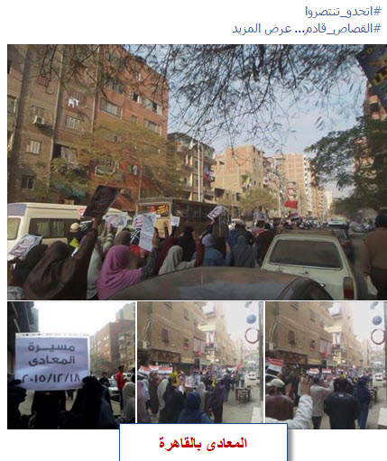 انتفض ثوار القاهرة من المعادى فى مسيرة قبل صلاة جمعة "اتحدوا تنتصروا" فى مشهد ثورى كبير، جابت الشوارع والأحياء وسط تفاعل كبير ومشاركة من الأهالى وترديد الهتافات والشعارات المناهضة للانقلاب العسكرى والمطالبة برحيل العسكر والقصاص لدماء الشهداء ضمن موجة ثورة حتى النصر التى دعا إليها التحالف الوطنى لدعم الشرعية والممتدة لـ25 يناير 2016.