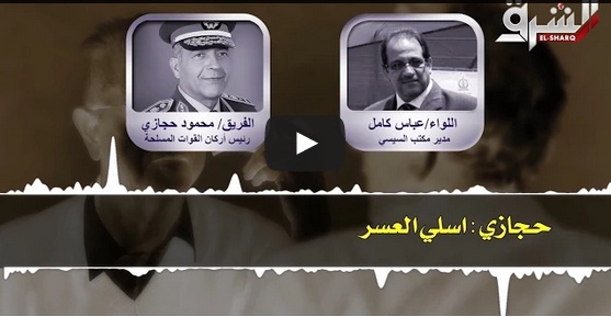 يشار إلى أن قناة الشرق بثت تسريبا جديدا للمجلس العسكري مساء اليوم الأحد، يدور حول حوار بين اللواء عباس كامل مدير مكتب عبد الفتاح السيسي والنائب العام، إذ طلب مدير مكتب السيسي من النائب العام بالإسراع في إجراءات قضية نجل الكاتب الصحفي محمد حسنين هيكل حتى يستطيع السفر والتنقل.