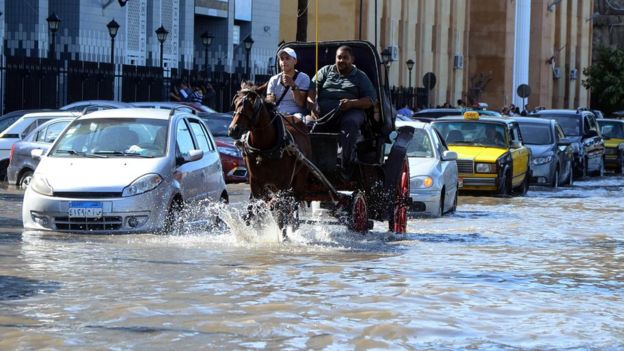 ونقلت صحيفة “الأهرام” الحكومية، انه فى محافظة الجيزة، وتحديدا ميدان الرماية وطريق الفيوم مرورا بشارعى فيصل والهرم، شهدت هذه الطرق اختناقات مرورية شديدة، ولم تظهر عربات المحافظة المختصة بشفط المياه أو أى من عمال الصرف الصحى، ربما لعدم وجود اعداد كافية من العاملين، وذلك لفتح غطاء البالوعات لسحب كمية المياه التى ارتفع منسوبها وغطت جانبى الأرصفة وأعاقت حركة سير المواطنين؛ ما زاد الأمر سوءا.