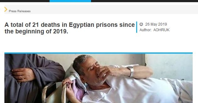 بعدما وصل عدد الوفيات بسجون الانقلاب، منذ بداية 2019، إلى نحو 21 حالة وفاة، ونحو 763 حالة وفاة في مراكز الاحتجاز منذ 3/7/2013، بينها 552 نتيجة للإهمال الطبي، اعتبرت المنظمة العربية لحقوق الإنسان في المملكة المتحدة، في بيان أخير لها، أن السجون المصرية أصبحت بمثابة فرق الموت، مما أدى إلى مقتل معتقليها بحرمانهم من حقهم في الحصول على الرعاية الطبية وتوفير بيئة خصبة لانتشار الأمراض والأوبئة؛ بسبب نقص النظافة ونشر التلوث والاكتظاظ وعدم عزل السجناء المرضى عن بقية السجناء.