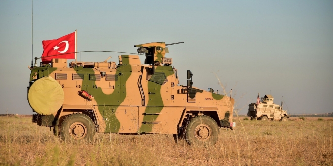ست عربات مصفحة رفعت العلم التركي شقت طريقها وتخطت عجلاتها الحدود مع سوريا على بعد 30 كم شرق قضاء أقجة قلعة بولاية شانلي أورفة، لتجتمع بموكب عسكري أمريكي، بعدها تحرك الموكبان العسكريان، التركي والأمريكي، من الحدود جنوبا في ريف مدينة تل أبيض، وقطعت الدورية المنطقة ذهابًا وإيابًا حتى ظهر اليوم الأحد.