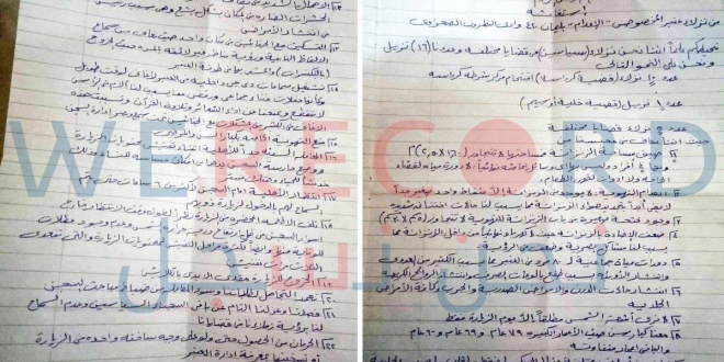 تلقى فريق “نحن نسجل” الحقوقي استغاثة مكتوبة بخط اليد، تصف حال المعاناة التي يواجهها من ينتظرون الإعدام.