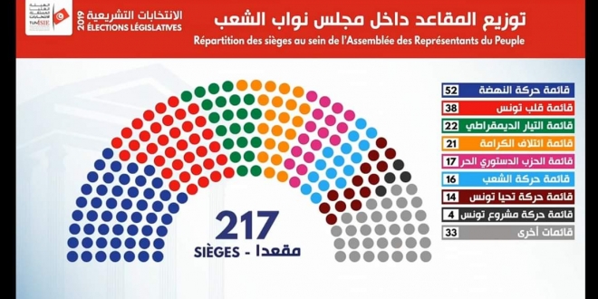 كما كان لافتًا تراجع حصة حزب الرئيس الراحل الباجي قايد السبسي من مقاعد البرلمان من 89 مقعدًا منحته الصدارة في انتخابات 2014 إلى 3 برلمانيين فقط.