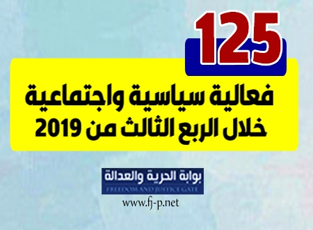 كشفت منظمات حقوقية عن استمرار الاحتجاجات السياسية والاجتماعية خلال الربع الثالث من عام 2019، مشيرين إلى تنظيم 125 فعالية احتجاجية، أبرزها مظاهرات 20 سبتمبر ضد قائد الانقلاب العسكري عبد الفتاح السيسي.