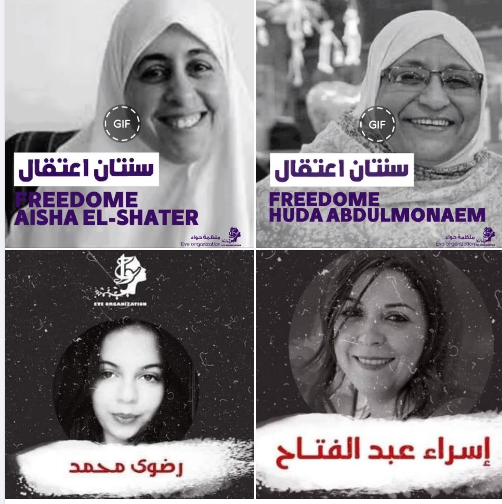 وطالبت المنظمة بالحرية لجميع المعتقلات بينهن المحامية والحقوقية هدى عبدالمنعم بالتزامن مع مرور عامين على جريمة اعتقالها في 1 نوفمبر 2018 من داخل منزلها، وأوضحت أن الضحية منذ ذلك الحين تتعرض لانتهاكات في ظروف احتجاز مأساوية لا تراعى كبر سنها واحتياجها لرعاية خاصة.
