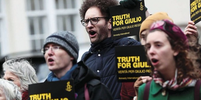 وطلب والدا جوليو ريجيني أن "يكون هناك تطبيق للقوانين الإيطالية والأوروبية التي تحظر تصدير السلاح للدول التي تنتهك حقوق الإنسان, موقفنا مهم لأن البديل عن ذلك سيكون هو حياة بلا أمان للإيطاليين في الخارج إذا لم يحاسب من قتلوا جوليو ريجيني".