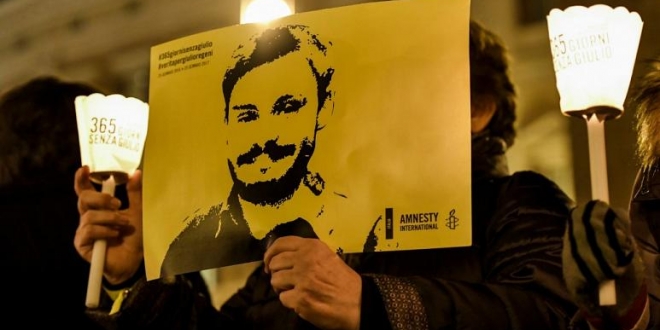 واختطفت شرطة الانقلاب الباحث الإيطالي جوليو ريجيني، 28 عاما، في القاهرة في يناير 2016، وعثر على جثته المشوهة بعد عدة أيام في ضواحي مدينة 6 أكتوبر، وكان طالب الدكتوراه في جامعة كامبريدج يبحث في النقابات المصرية.
