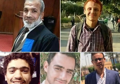 والضحايا الأربع هم: مصطفى المحلاوي ومسعود محسن والسيد رخا وأحمد صفوت، حيث تم عرضهم على النيابة بمزاعم لا صلة لهم بها بينها الانضمام لجماعة محظورة وحيازة منشورات.