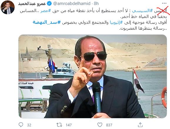 ومساء الثلاثاء 30 مارس 2021، قال المحلل الإثيوبي محمد العروسي علق على تصريحات السيسي قائلا إن "التهديدات الجادة تُنقل عبر القنوات الدبلوماسية وليس الإعلام" واعتبر في حوار له مع "الجزيرة مباشر" أن "حديث السيسي مُوجَّه للداخل المصري الذي يعاني الأزمات وليس موجها للمسؤولين الإثيوبيين.