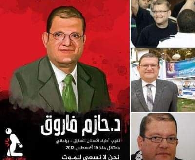 ومنذ اعتقال الدكتور حازم فاروق يوم 15 أغسطس 2013 وهو يتعرض لانتهاكات عديدة وجرائم ضمن مسلسل التنكيل به وبأبناء مصر الذين يُضرب بهم المثل في التضحية والعمل من أجل رفعة الوطن وسعادة أبنائه.