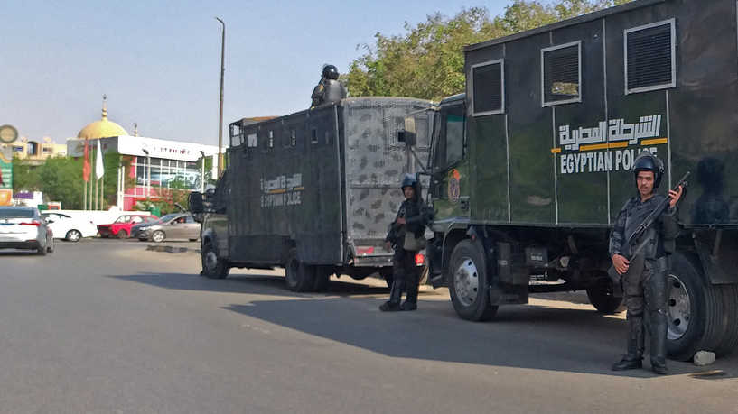 Egyptian riot police stand guard in Egypt's capital Cairo on September 27, 2019. - Egypt's President dismissed today a call for a second weekend of protests as "no reason for concern", with hundreds already arrested in an intensifying crackdown on a rare show of discontent on the streets. (Photo by Khaled DESOUKI / AFP)