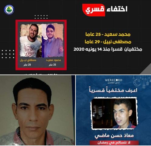 وثقت الشبكة المصرية لحقوق الإنسان استمرار الاختفاء القسري للشابين مصطفى نبيل ومحمود سعيد منذ اعتقالهما من أمام مرور قرية الخطاطبة بمدينة السادات محافظة المنوفية بتاريخ 14 يونيو 2020 دون سند من القانون .