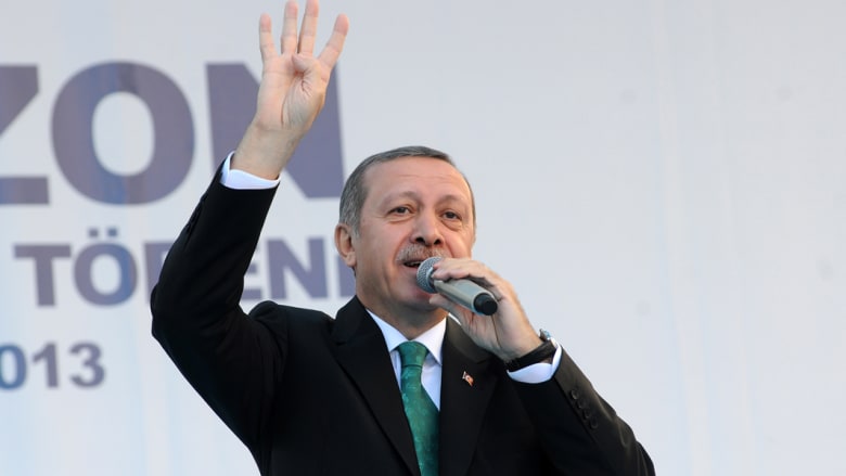 ويربط العديد من الأتراك الآن لافتة رابعة كشعار لحزب العدالة والتنمية.