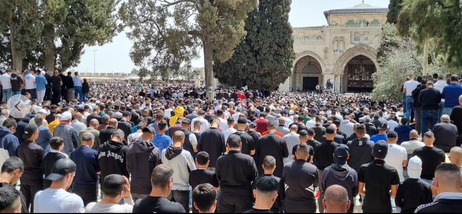 وكان آلاف المصلين اعتكفوا بالمسجد الليلة الماضية دون تدخل من شرطة الاحتلال، وشهدت الشوارع بالقدس الشرقية، اختناقات مرورية بسبب ارتفاع أعداد المصلين.