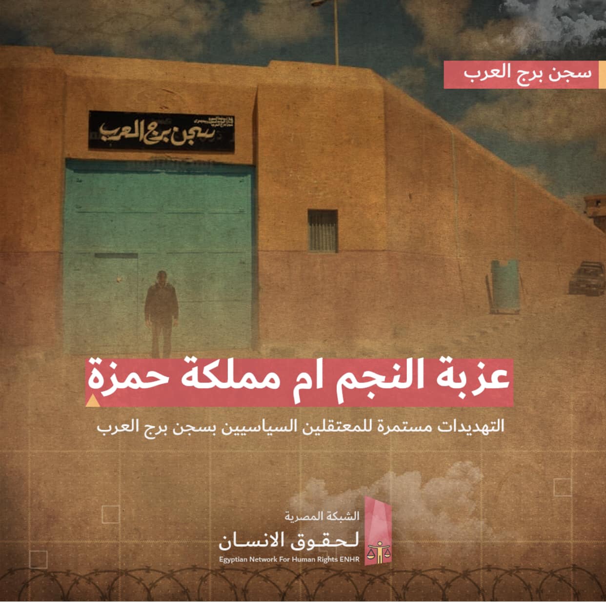 وقالت الشبكة : “حمزة المصري ضابط الأمن الوطني بسجن برج العرب، والذي بات معروفا بمملكة حمزة، نظرا لكثرة الانتهاكات التي تجري على يديه، ونائبة النزيل الجنائي محمد عبد السلام النجم تاجر البانجو، والذي يدير فعليا السجن مع حمزة المصري، كما قال حمزة المصري للمعتقلين “أنا والنجم واحد، كلمته كلمتي”.