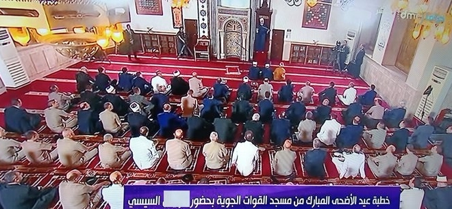 وكتب حساب المﻻك الحزين @Lido8080، "هل تعلم ان الإمام ال أم رئيس الجمهورية و كبار رجال الدولة و القوات المسلحة المصرية ف صلاة #عيد_الاضحى نسي قراءة الفاتحة ف الركعة الثانية!كبر الخمس تكبيرات ثم قرأ اذا جاء نصر الله و الفتح مباشرة! وصلاة العيد كانت منقولة تلفزيونيا ع الهواء! ياترى ده نتيجة الخوف م #السيسي ولا سهو".