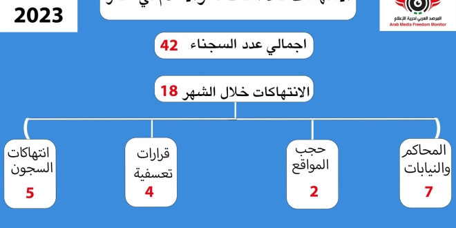 وأضاف في تقريره عن انتهاكات حرية الإعلام في مصر خلال يونيو 2023 أن الصحافة المصرية عانت ما لم تعانه عبر تاريخها الحديث، خلال عشر سنوات مليئة بالعدوان والتنكيل على الصحفيين والصحفيات، ولم يكتف صناع تلك الانتهاكات ، بكل المواقع التي حجبوها في العقد الأخير، والتي تجاوزت الـ 600 موقع، بل طال الحجب الشهر المنصرم دون سابق إنذار أو سبب قانوني، موقعي السلطة الرابعة ومصر 360، بالتزامن مع استمرار القلق على الصحفيين بمقار الاحتجاز والسجون في ظل واقع صعب.
