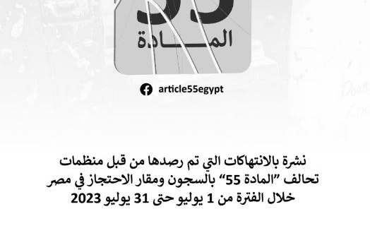 أيضا أكدت المنظمات في تحالف "المادة 55" أن تلك الممارسات التي تتم بداخل سجون ومقار الاحتجاز داخل مصر، تثير مخاوف جدية حول مصير المحتجزين، خصوصا بعد ازدياد أعداد حالات الوفاة داخل مقار الاحتجاز في الفترة الأخيرة، وتردي الأحوال المعيشية بداخلها.