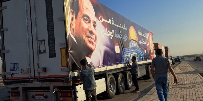 وقالت مصادر أمنية مصرية: إن “أكثر من 100 شاحنة كانت تنتظر بالقرب من المعبر على الجانب المصري يوم الخميس رغم أنه من غير المتوقع أن تدخل المساعدات قبل يوم الجمعة، يتم احتجاز المزيد من المساعدات في مدينة العريش المصرية، على بعد حوالي 45 كيلومترا 28 ميلا من رفح”.