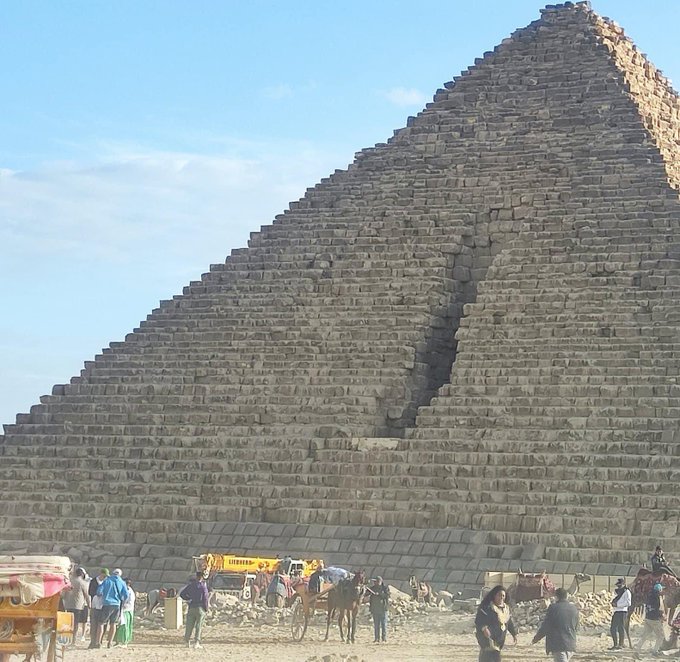 وعلق عليه أسامة @OsamaAbdullah28 ساخرا، “العمال بدأو في تبليط الهرم، حاجة زي الفل”.