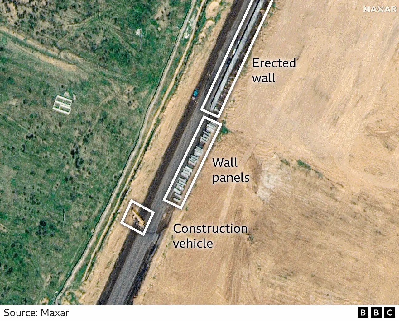 في الأسبوع الماضي، نشرت مؤسسة سيناء لقطات حصرية تظهر جرافات تزيل الأنقاض وتبني جدارا خرسانيا على طول الحدود مع دولة الاحتلال، جنوب معبر رفح الحدودي.