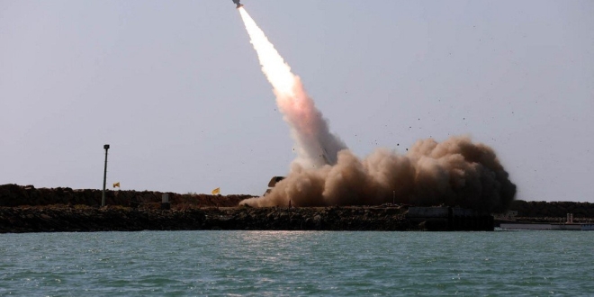 A handout picture provided by the Iranian Army media office on January 19, 2024, shows the launch of a missile during a military drill at an undisclosed location in southern Iran. (Photo by Iranian Army office / AFP) / RESTRICTED TO EDITORIAL USE - MANDATORY CREDIT "AFP PHOTO / HO /IRANIAN ARMY MEDIA OFFICE" - NO MARKETING NO ADVERTISING CAMPAIGNS - DISTRIBUTED AS A SERVICE TO CLIENTS