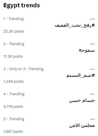 تصدر هاشتاج #رفح_تحت_القصف الأعلى في تريند منصة (اكس) تويتر سابقا ليسجل نحو 25 ألف تغريدة منذ صباح الاثنين، حيث انطلقت حرب الإبادة الجماعية، وألقت الطائرات الصهيونية