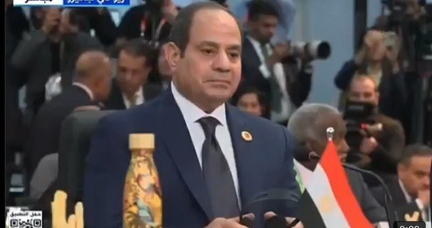 فكتب الدكتور سام يوسف: ” هذا المشهد من مؤتمر العشرين الأخير يظهر فيه السيسي و نظراته تنم عن الخوف والرعب، مما هو قادم قريبا بإذن الله، لقد اقترب يوم الحساب”.