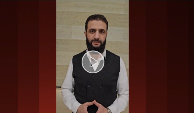 وختم الشرع الملقّب بالجولاني، كلمته باللهجة السورية قائلًا “وكما قلناها منذ البداية منصورة بعون الله”.