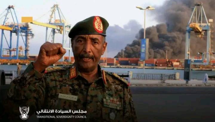 ونقل التلفزيون السوداني كلمة رئـيـس مجلس السيـادة القائد العام للقـوات المسلحــة الفريق أول الركن عبـدالـفـتاح البرهان وفي خلفيته دخان الحرائق التي طالت ميناء بورتسودان مقر حكومة السودان وبعد اجتماع عقده مجلس الأمن والدفاع بشكل طارئ بكامل عضويته، برئاسة الفريق أول الركن عبدالفتاح البرهان.