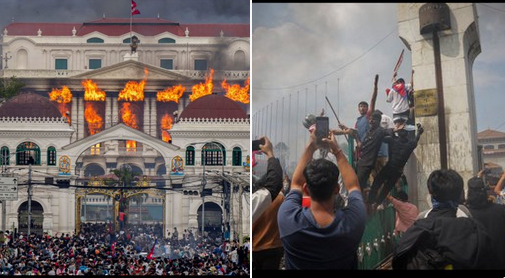 الناس نزلت الشوارع وأحرقوا بيوت الوزراء والمسؤولين والمقرات الحكومية.. وحرقوا أكبر قصر في آسيا (ساكه يا متعاص يا بتاع هبني قصور رئاسية؟).