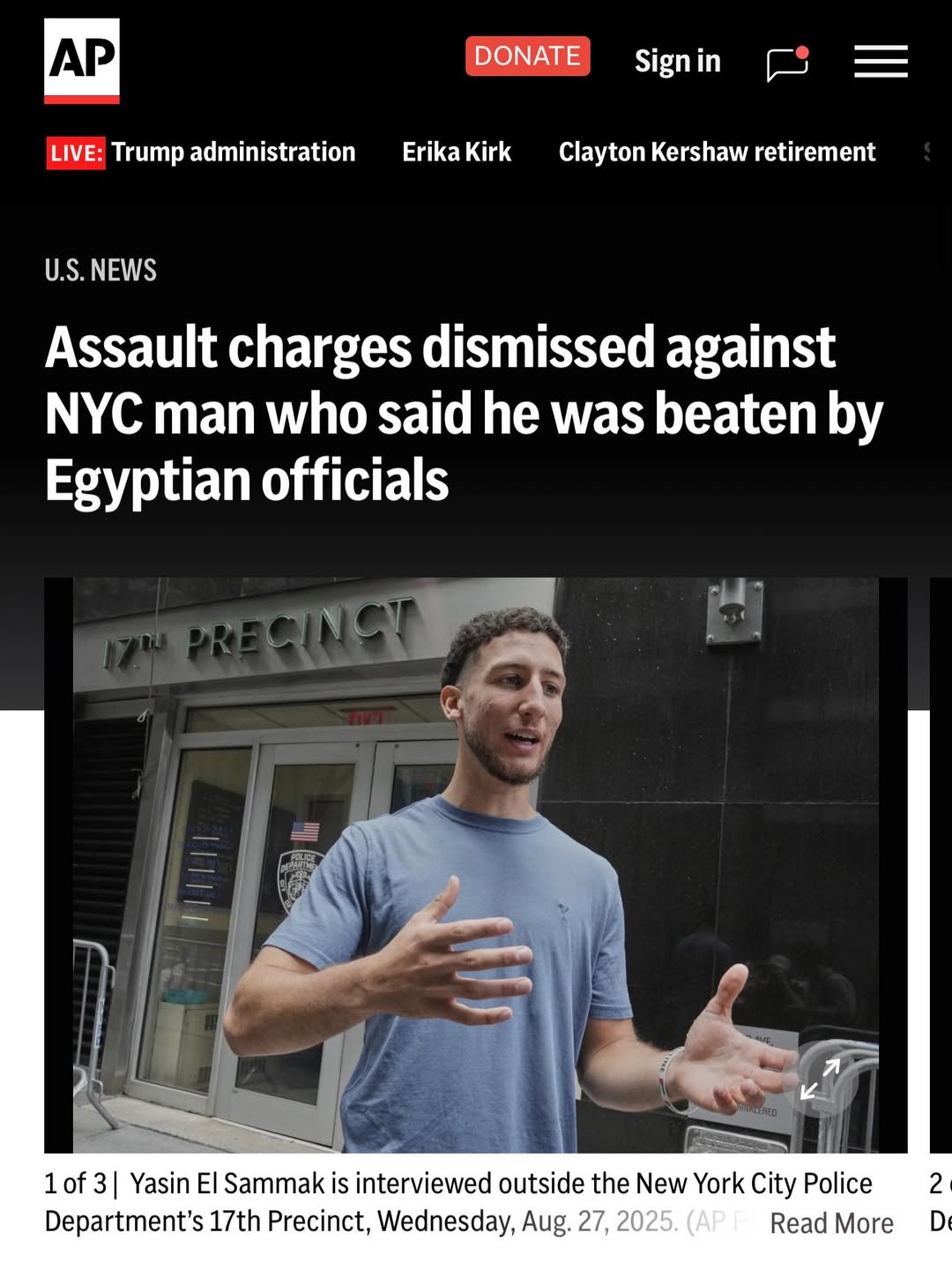 وقال حساب الدكتور أحمد عبدالباسط Ahmed Abdel-Basit Mohamed أستاذ الفيزياء عبر حسابه: "خبر عاجل ومفرح .. النيابة أسقطت تهم الاعتداء عن الشاب ياسين السمّاك (22 سنة) اللي كان متهم ظلما بالاعتداء علي أعضاء البعثة المصرية، ياسين كان هو المعتدى عليه من أعضاء البعثة وتم دفعه بالقوة داخل مبني البعثة المصرية، وبعدها الشرطة الأميركية قبضت عليه.