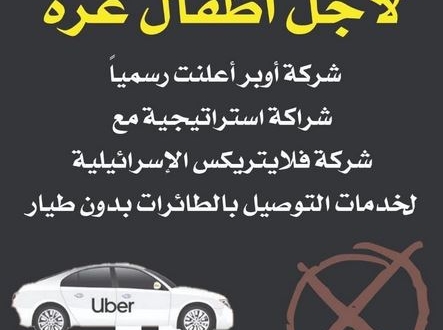 ونصح أن "قاطع أوبر واحذف تطبيقها من على هاتفك، ولا تجعل أموالك أداة لمساعدة للاحتلال، ووسيلةللقتــل في #غزة.. قاطع كل داعم للاحتلال..".