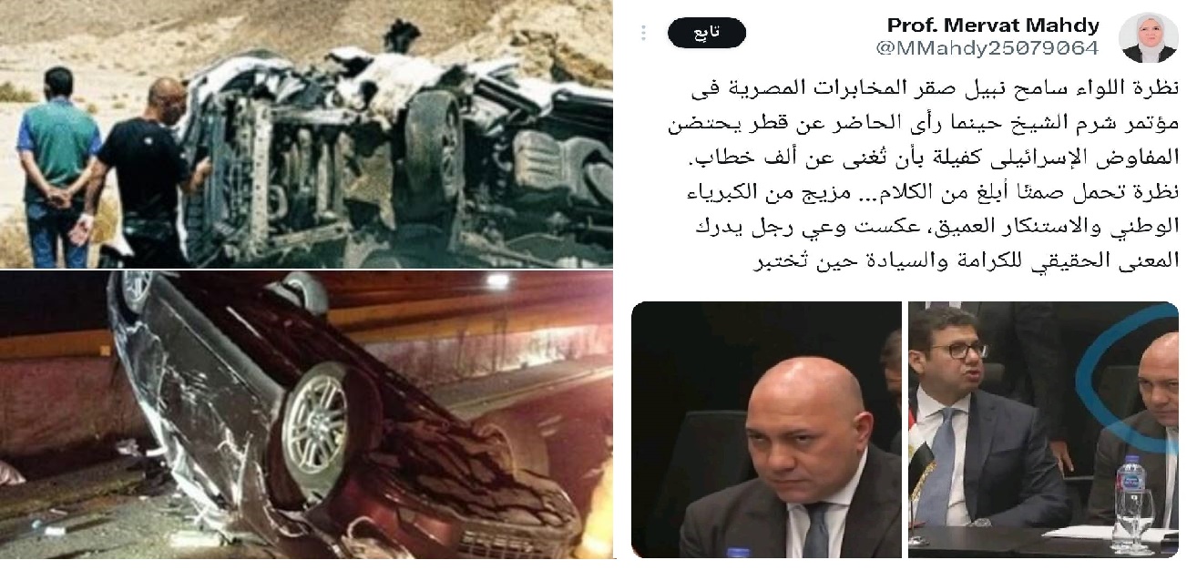 تحقيقات قطرية مرتقبة في حادث مصرع وفد قطر المرافق للوفد الدبلوماسي المشارك في محادثات شرم الشيخ غير المباشرة، بعدما تعرّض الوفد لتلميحات من لجان الشؤون المعنوية (أحد أجنحة القوات المسلحة وتقوم بدور كثيف منذ ثورة 2011 وإلى اليوم يوازي أجهزة المخابرات الحربية وأكبر من جور بقية الأجهزة الأخرى) وتفسيرات لنظرات وفد المخابرات العامة المشارك في المفاوضات غير المباشرة (اللواء سامح نبيل) وأعضاء بالوفد (بأحضان للوفد الإسرائيلي) وذلك على اعتبار أن الأحضان منعدمه عند نبيل أو رئيسه أو رئيس الانقلاب ذاته.