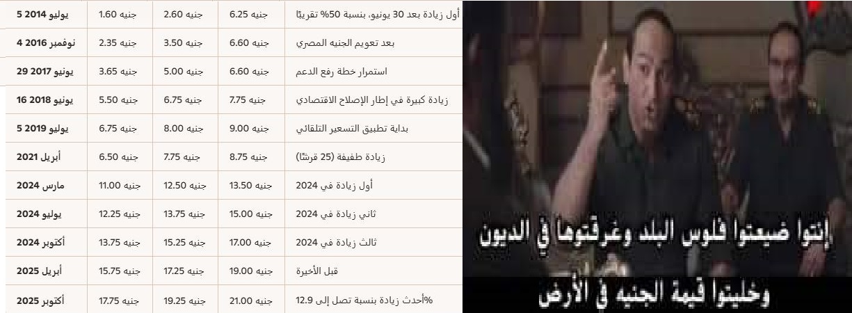 واعتبر أن الزيادات “عكس أي منطق وعقل، بتغلي على سعر الفقير أكتر من تلت اللي بتزوده على الغني، وبنسبة تخلي كل السلع والخدمات تزيد بكل أريحية”.