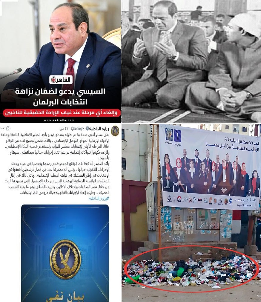 وحتى (مساء الأحد 16 نوفمبر) أصدرت داخلية السيسي بيانا قالت : "الوزارة نفت وجود أي تجاوزات مؤثرة في العملية الانتخابية، واعتبرت أن ما يُثار مجرد "شائعات" مصدرها جماعة الإخوان، مؤكدة أن الانتخابات تسير بشكل طبيعي ومنتظم.".