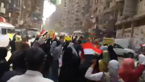ردد الثوار الهتافات والشعارات المطالبة برحيل العسكر والعودة للمسار الديمقراطى، والانتصار للحرية والكرامة الإنسانية والعدالة الاجتماعية، ومحاكمة كل المتورطين فى جرائم بحق مصر وشعبها الحر، وسط تفاعل كبير من الأهالى، رافعين أعلام مصر وصور الرئيس محمد مرسى وشارات رابعة العدوية وصور الشهداء والمعتقلين.