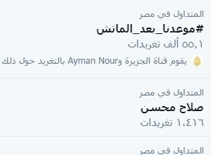 تصدر هاشتاج "#موعدنا_بعد_الماتش" موقع تويتر، بالتزامن مع استمرار المظاهرات المطالبة بإسقاط قائد الانقلاب العسكري عبد الفتاح السيسي وعصابته، وأكد المغردون استمرار المظاهرات في كافة شوارع مصر حتى استرداد ...