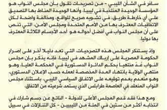 أعلن المجلس الأعلى للدولة في ليبيا عن رفضه للتدخل السافر لنظام الانقلاب في مصر في الشئون الداخلية لليبيا، مطالبًا حكومة الانقلاب بالالتزام بقرارات مجلس الأمن والتوقف عن انتهاكها ...