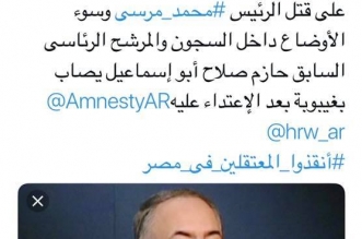 أكَّد عبد الله مرسي، نجل الرئيس الشهيد محمد مرسي، وجود شبهة جنائية وراء وفاة والده داخل سجون الانقلاب، مؤكدًا ضرورة إجراء تحقيق دولي في جريمة قتل والده. وقال ...