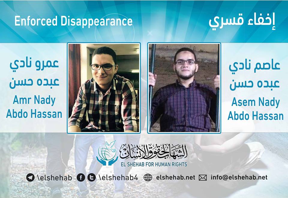 تواصل مليشيات أمن الانقلاب ببني سويف إخفاء الطالب عمرو نادي عبده حسن، للشهر الثالث على التوالي، وذلك منذ اعتقاله يوم 20 نوفمبر 2017، فيما تواصل إخفاء شقيقه عاصم، ...
