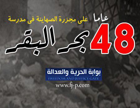 تمر اليوم الذكرى رقم 48 لمجزرة بحر البقر التي ارتكبتها القوات الجوية بجيش الاحتلال الصهيوني في صباح الثامن من أبريل عام 1970 م، حيث قصفت طائرات من طراز ...