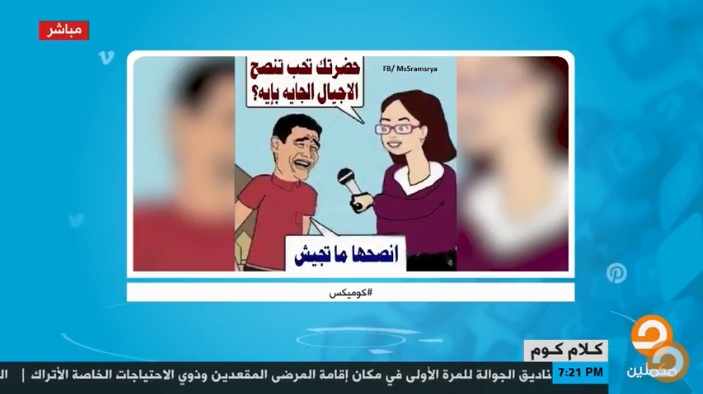 بثت قناة “مكملين” عبر برنامج “كلام.كوم”، مقطع فيديو يظهر أبرز الكوميكسات الساخرة على مواقع التواصل الاجتماعي خلال الـ24 ساعة الماضية. وجاءت أبرز الكوميكسات حول إبداء عدد من الشباب ...