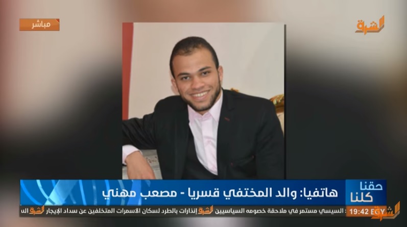 روى والد الدكتور ” مصعب مهنى على أبو خضير ” المختفي قسريا تفاصيل اختفائه عقب أدائه الامتحان بمستشفى الحسين الجامعي. وقال والد مصعب في مداخلة هاتفية لبرنامج “حقنا ...
