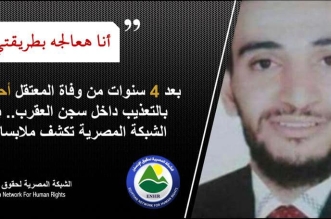 كشفت الشبكة المصرية لحقوق الانسان عن ملابسات ارتقاء الشهيد أحمد عبدالله محمد عبد الله داخل سجن "العقرب شديد الحراسة 1" منذ 4 سنوات، ووثقت بالأسماء المتورطين في تعذيبه ...