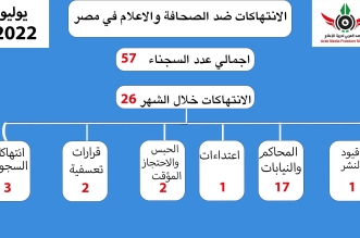 التعليقات على 26 انتهاكا لحرية الإعلام خلال يوليو المنقضي واستمرار حبس 57 صحفيا وصحفية مغلقة