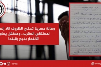 وثقت "التنسيقية المصرية للحقوق والحريات" رسالة وصلتها من المعتقلين بسجن العقرب تكشف عن تصاعد الانتهاكات ومحاولة أحد المعتقلين الانتحار نتيجة ما يحدث ضدهم من جرائم وقتل ممنهج بالبطيء. ...