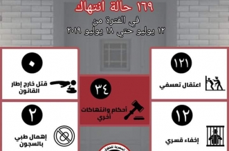 رصد مركز الشهاب لحقوق الانسان فى تقريره المشهد الحقوقي لانتهاكات حقوق الإنسان في #مصر خلال الربع الثاني من 2019 عدد من الانتهاكات وصل ل 870 انتهاكا متنوعا ووفقا ...