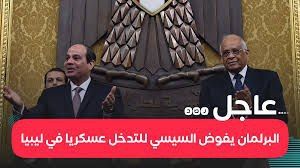 فوّض مجلس نواب الدم قائد الانقلاب الدموى عبد الفتاح السيسي للتدخل العسكرى فى ليبيا لمواجهة قوات الشرعية ممثلة فى حكومة الوفاق بقيادة فايز السراج ودعم الانقلابى العميل خليفة ...
