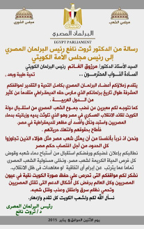 أرسل البرلمان المصرى المنعقد في تركيا، مساء أمس، برسالة إلى مجلس الأمة الكويتي، يعبر فيها عن غضب الشعب المصري من استقبال قائد الانقلاب العسكري في دولة الكويت، مؤكدا أنه ...